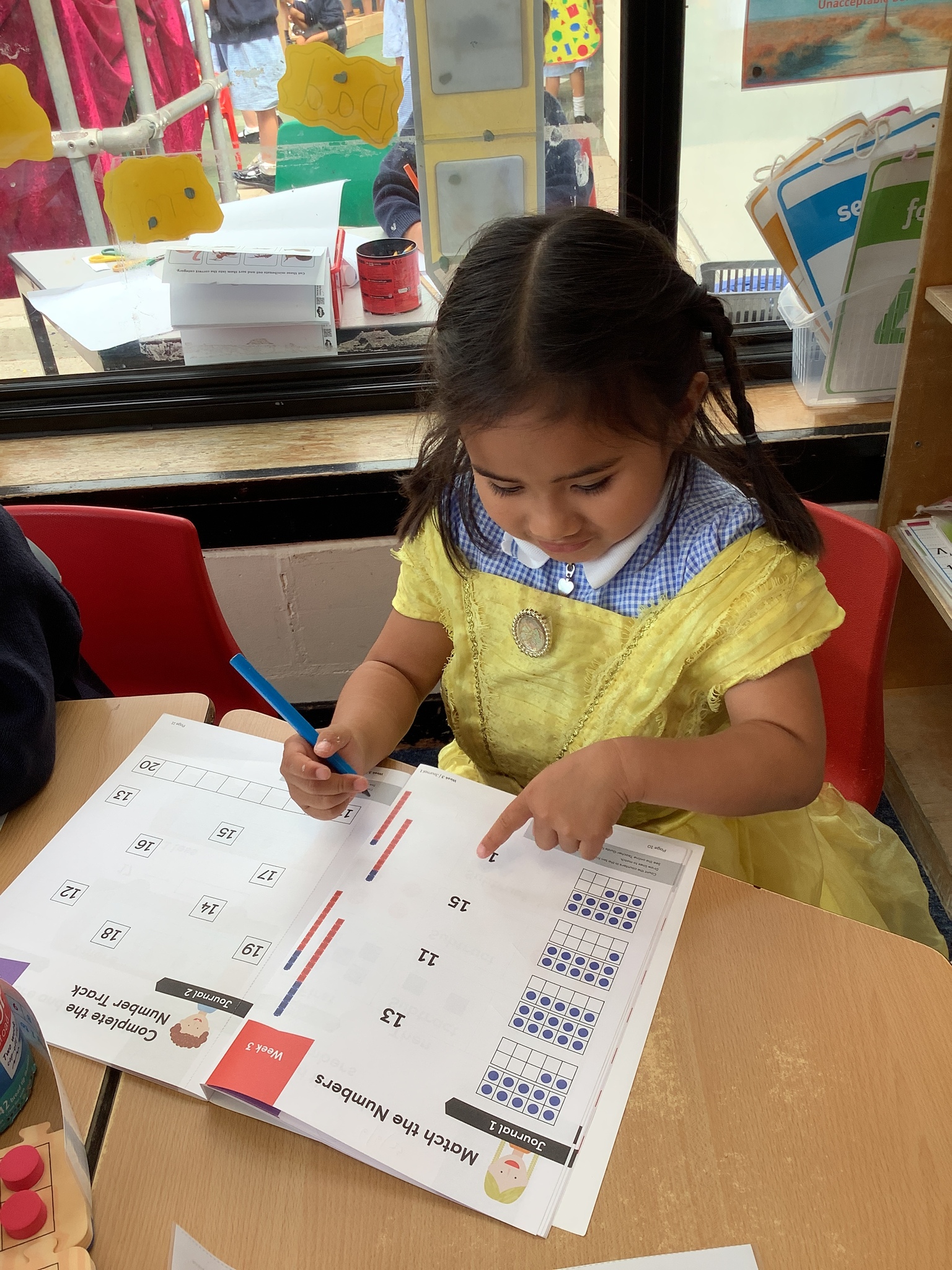 We implement our approach through high quality teaching delivering appropriately challenging work for all individuals. We follow the Maths No Problem Scheme. Each child has a Maths No Problem work book and we extend and support learning by using Maths Journals. To support us we have a range of mathematical resources in classrooms including Number lines, Base10 and counters.