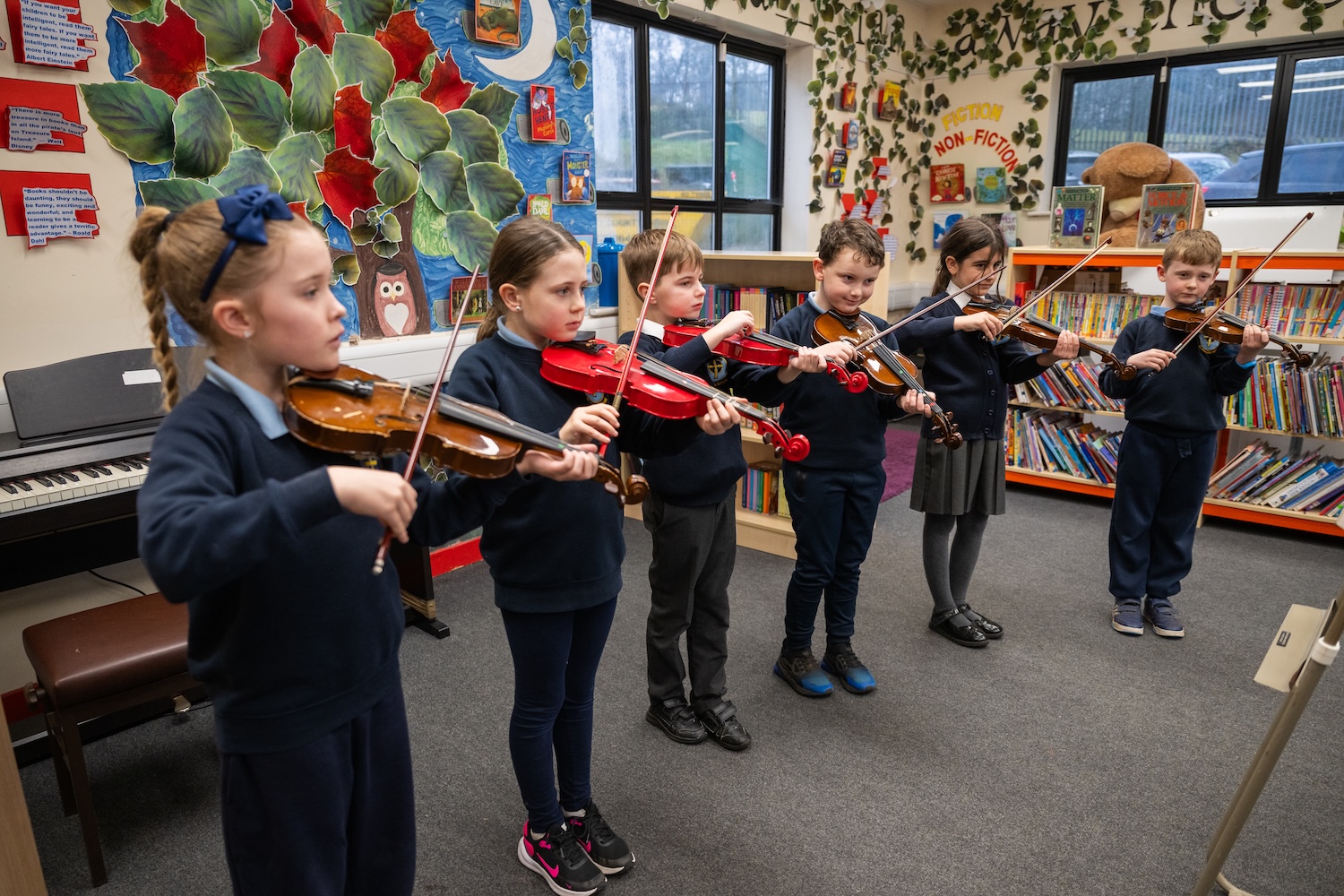 Whilst in school, children have access to a varied programme, which allows students to discover areas of strength, as well as areas they might like to improve upon. The integral nature of music and the learner creates an enormously rich palette from which a student may access fundamental abilities such as: achievement, self-confidence, interaction with and awareness of others, and self-reflection. Music will also develop an understanding of culture and history, both in relation to students individually, as well as ethnicities from across the world. Children are able to enjoy music, in as many ways as they choose- either as listener, creator or performer. They can dissect music and comprehend its parts. They can sing and feel a pulse. They have an understanding of how to further develop skills less known to them, should they ever develop an interest in their lives.